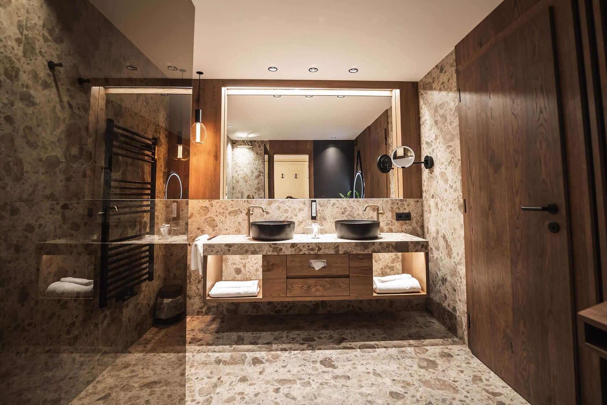 Bagno con doccia, WC, bidet, asciugacapelli, tavolo da trucco