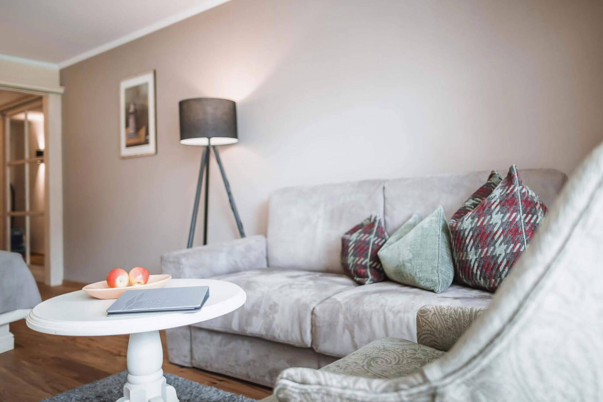 Angolo salotto accogliente con scrivania